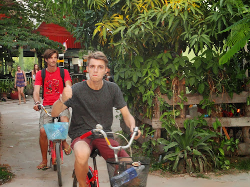 Comme ils l'ont fait à "Vientiane", Nima et Faraz se dévouent pour trouver un Hostel pendant que le reste du groupe savoure un petit café en terrasse. L'après-midi consiste juste en une petite ballade sur l'île se terminant par un merveilleux couché de soleil!