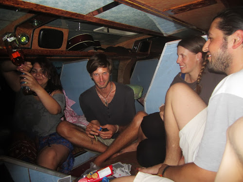 En fin de journée, nous grimpons donc tous dans le "Sleeping Bus", qui est par ailleurs mieux que le premier et, cette fois, le "Red Label" coule dans nos gosiers au fil d'un jeu plutôt marrant dont le but est simple : dire chacun notre tour un mot ne commençant ni par la lettre "C", ni par la lettre "S", et qui soit en rapport avec le mot du précédant candidat...