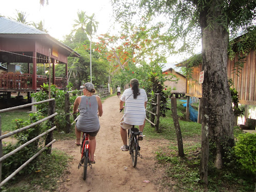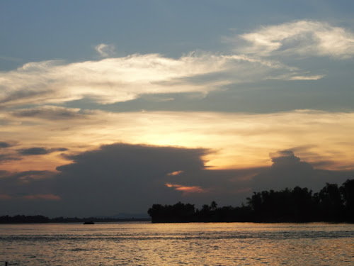 Nous louons des vélos et faisons une petite ballade sur notre île. Le passage du pont entre "Don Det" et "Don Khon" étant payant, et la journée étant déjà bien entamée, nous décidons de revenir sur nos pas, d'aller admirer le coucher du soleil et de revenir demain...